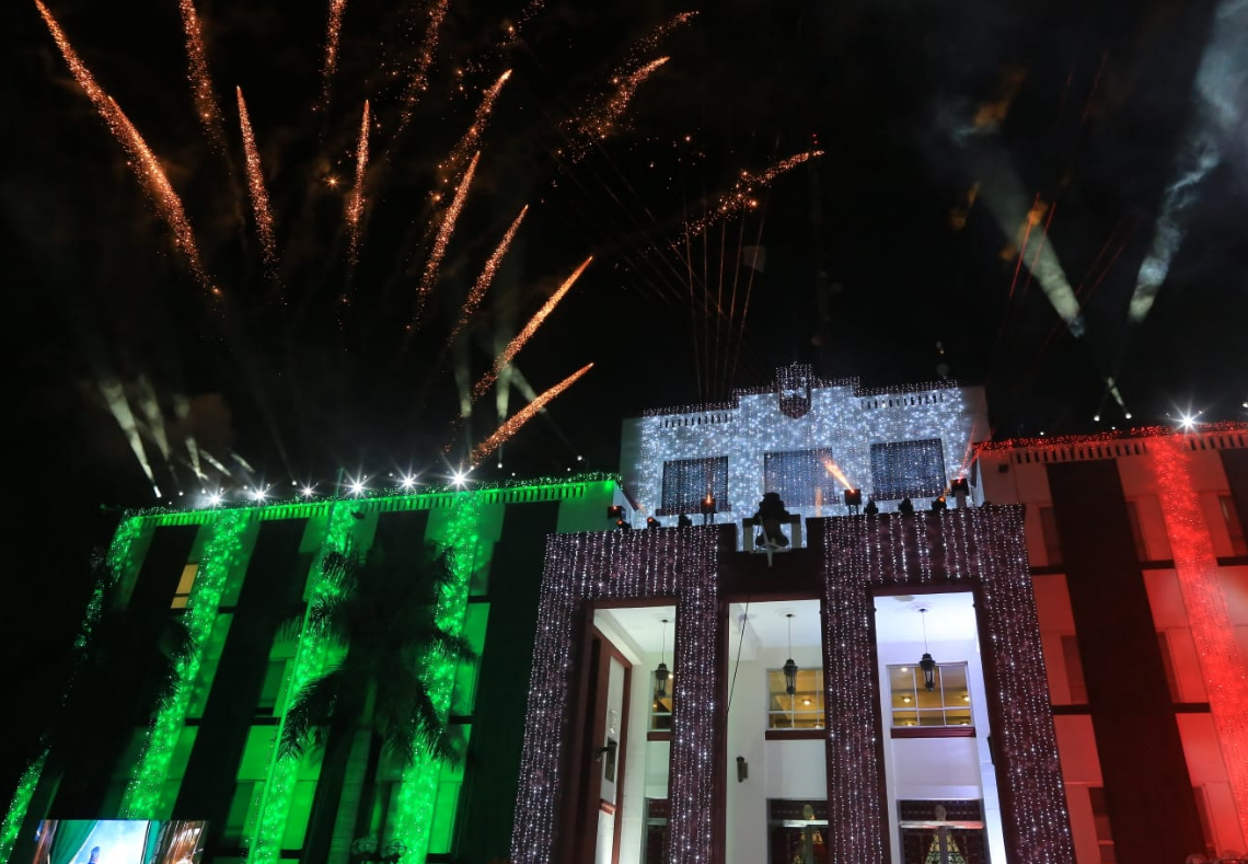 Posteriormente, inició un espectáculo de pirotecnia que iluminó el cielo de la capital tamaulipeca.