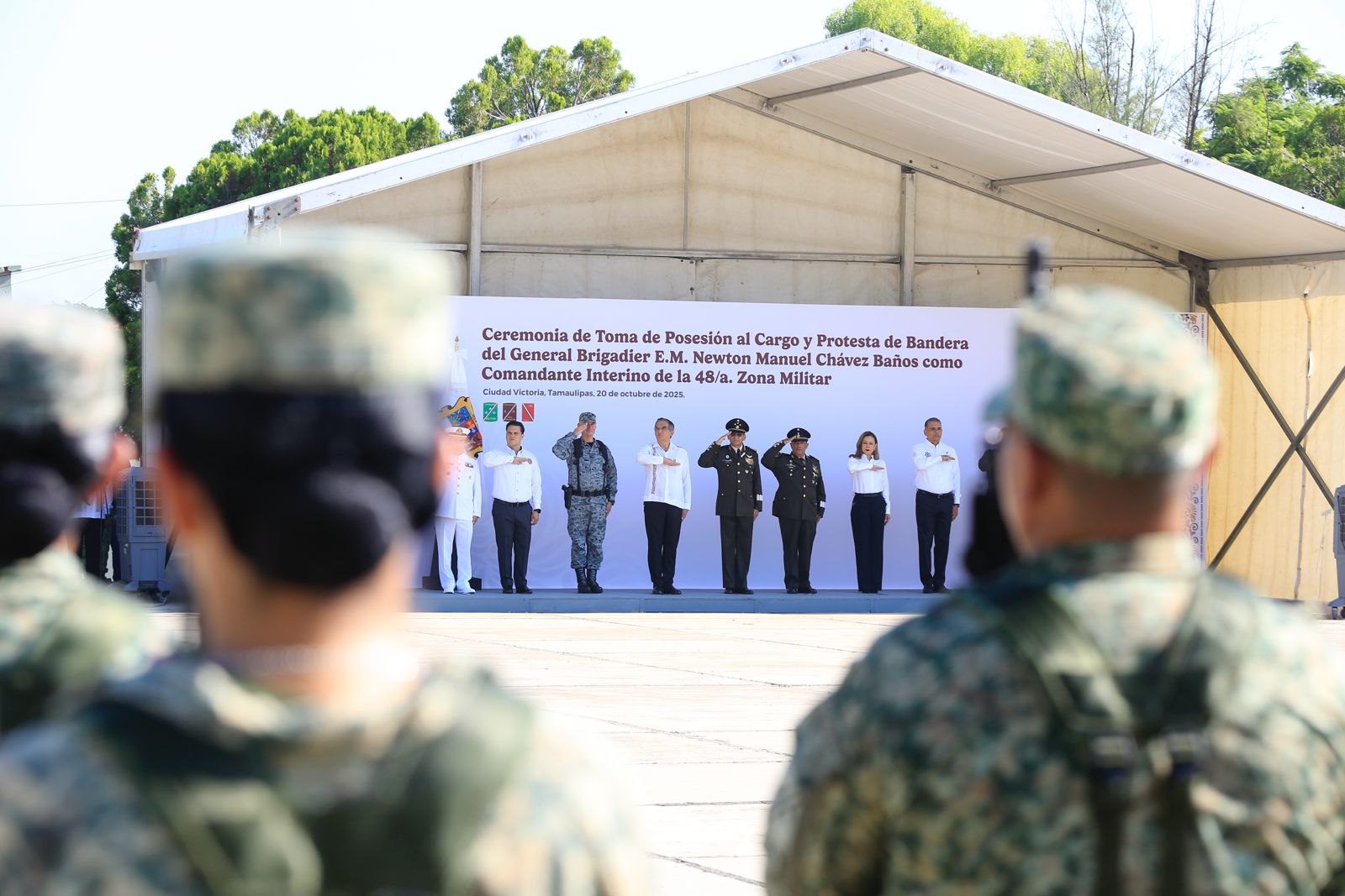 Asiste gobernador Américo Villarreal a toma de protesta del comandante interino de la 48 Zona Militar
