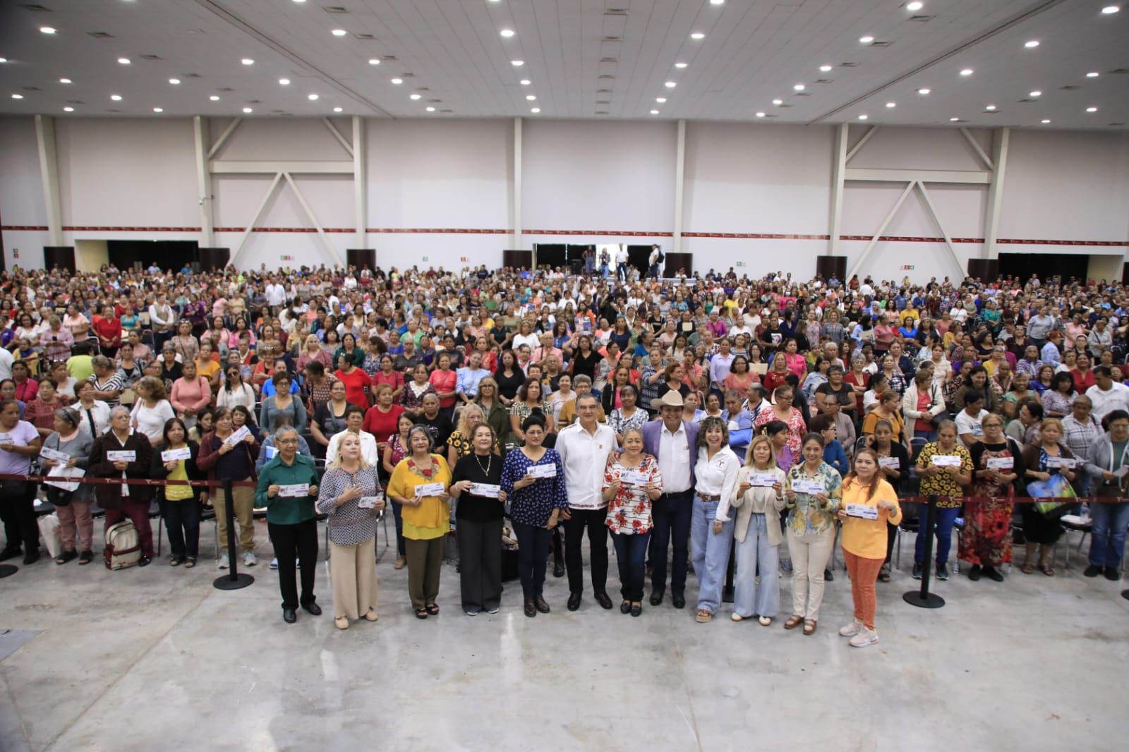 Al presidir la entrega de tarjetas del programa Pensión Mujeres Bienestar a dos mil tamaulipecas reunidas en el Polyforum de esta capital, el gobernador Américo Villarreal Anaya destacó la visión humanista de la presidenta Claudia Sheinbaum para reconocer a quienes han contribuido a forjar una mejor sociedad en Tamaulipas y en México.