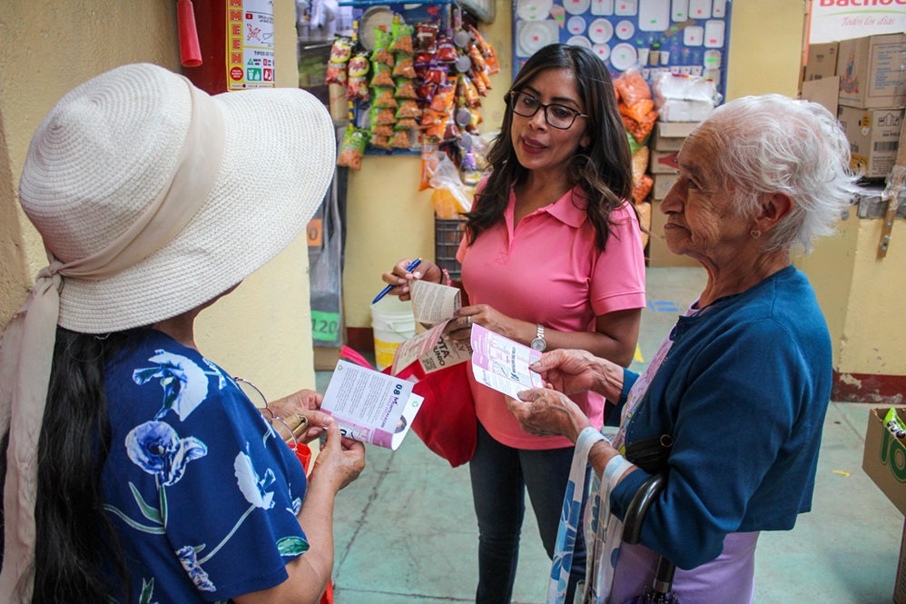 En diálogo con mujeres, hombres y jóvenes, ha promovido la importancia de participar en las elecciones históricas del 1 de junio, destacando que cada voto es clave para fortalecer el sistema de justicia en México.