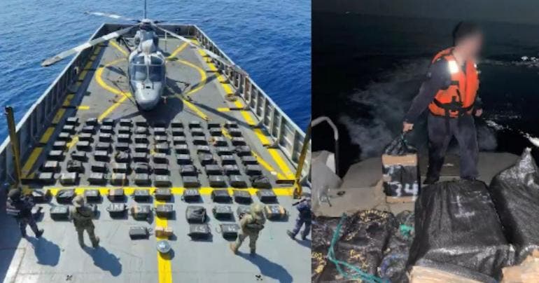 La Secretaría de Marina, a través de la Armada de México en funciones de Guardia Costera, informó sobre el aseguramiento de aproximadamente 3 mil 600 kilogramos de presunta cocaína y de la detención de nueve personas a aproximadamente 133 millas náuticas (214.43 kilómetros) al sureste de Acapulco, Guerrero.