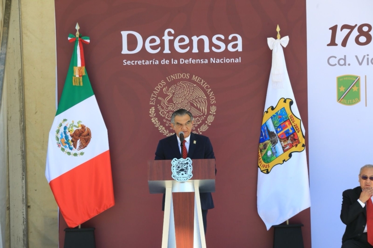 Desde la escalinata principal de Palacio de Gobierno, el gobernador de Tamaulipas recibió la bandera nacional de manos de la escolta del 77 Batallón de Infantería y exclamó. «¡Tamaulipecos, tamaulipecas!,…