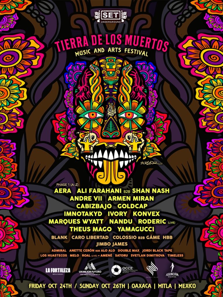 Desde su concepción en 2021, inspirada en la fuerza visual del desfile de Día de Muertos inmortalizado en el filme Spectre, Tierra de los Muertos se ha consolidado como un portal cultural que no solo celebra la vida a través de la música electrónica, sino que también honra la memoria de un pueblo que ve en la muerte una forma de continuidad. Con el respaldo de Set Underground, organización reconocida por su calidad en la producción de experiencias de este calibre, el festival ha evolucionado hasta convertirse en un punto de convergencia donde el poder de la música se entrelaza con el legado zapoteca y con las expresiones contemporáneas del arte global.